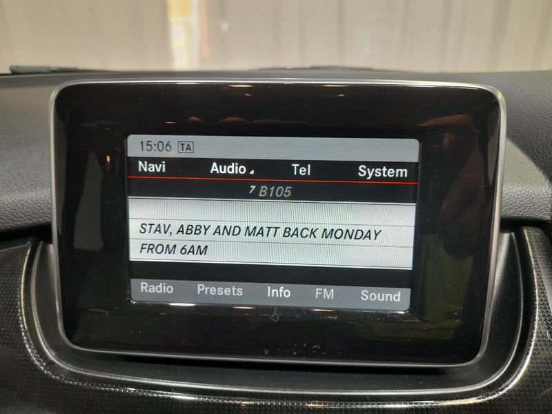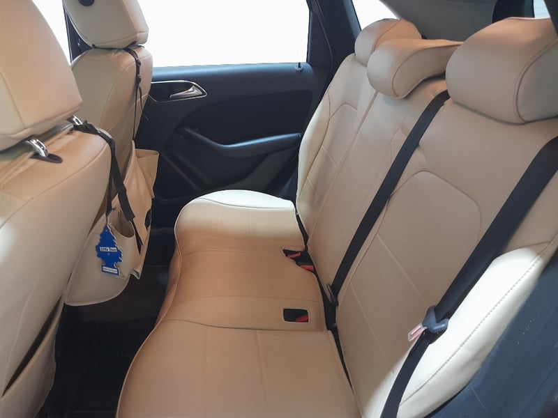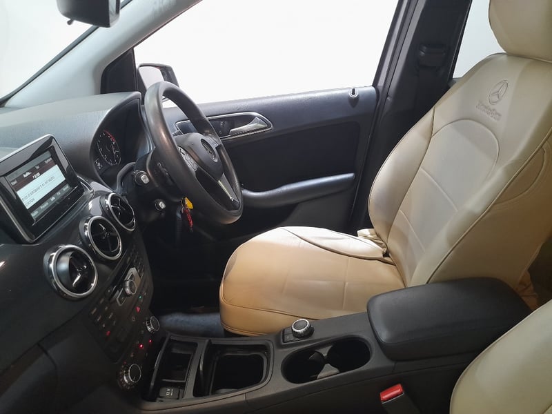 Presenting a 2013 Mercedes-Benz B180 in grey, this five-door hatchback delivers practical family motoring with premium credentials. Equipped with a 1.6-litre four-cylinder inline petrol engine producing responsive performance through a smooth seven-speed automatic transmission with front-wheel-drive capability. The odometer displays 147,852 kilometres, reflecting steady usage. This model features a contemporary cabin with beige and black leather appointed seats, ambient cabin controls, and a navigation-integrated infotainment system. The vehicle presents well with alloy wheels and demonstrates the build quality Mercedes-Benz is renowned for in the compact hatchback segment. Decorative graphics on driver's side door panel, minor wear consistent with age and usage. Inspection recommended.