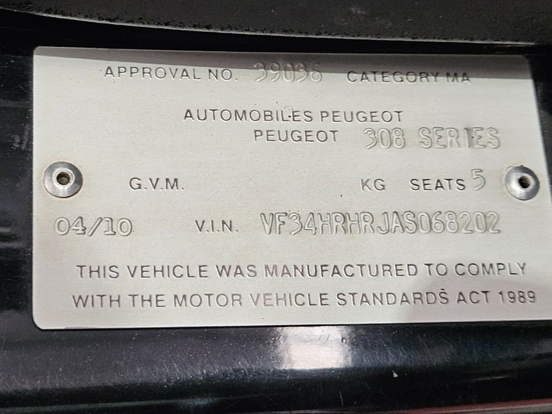2010 Peugeot 308 XSE Year: 2010Make: PeugeotModel: 308Series: XSEBody: 5-Door WagonDrive Type: Front wheel driveOdometer: Indicating 194,000 Engine: 2.0 DieselTransmission: AutomaticColour: BlackSeats: 5Description/extras: Air Conditioning, Power windows, Cruise control, AUX / USB, Sunroof, CD player. VIN: VF34HRHRJAS068202ENG No: DYXG4019081(Key #A12)Lloyds stock #990995+1#PCV