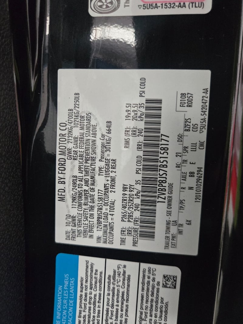 VIN: 1ZVBP8JS7B5158177