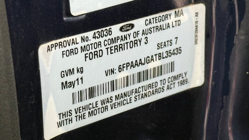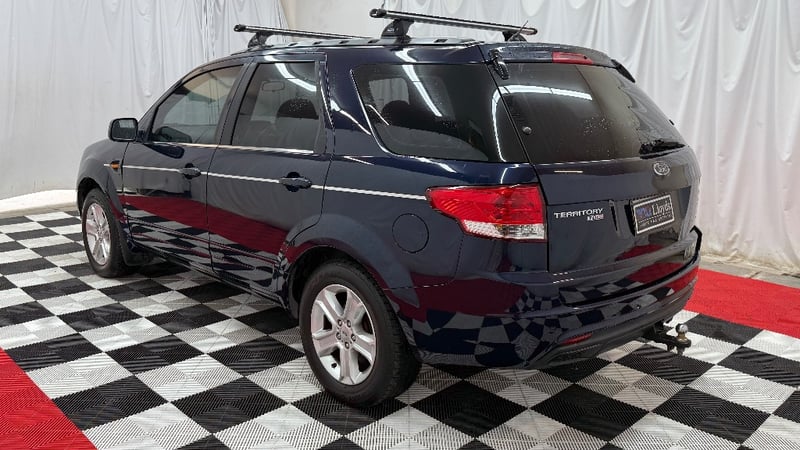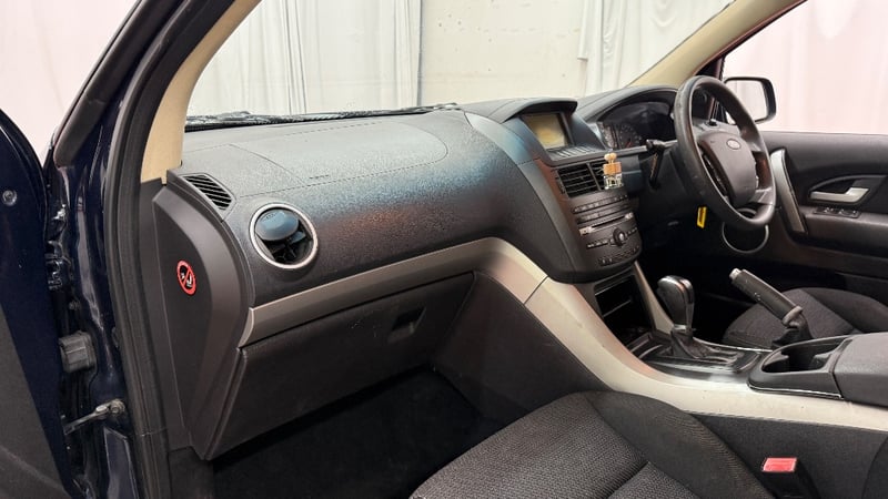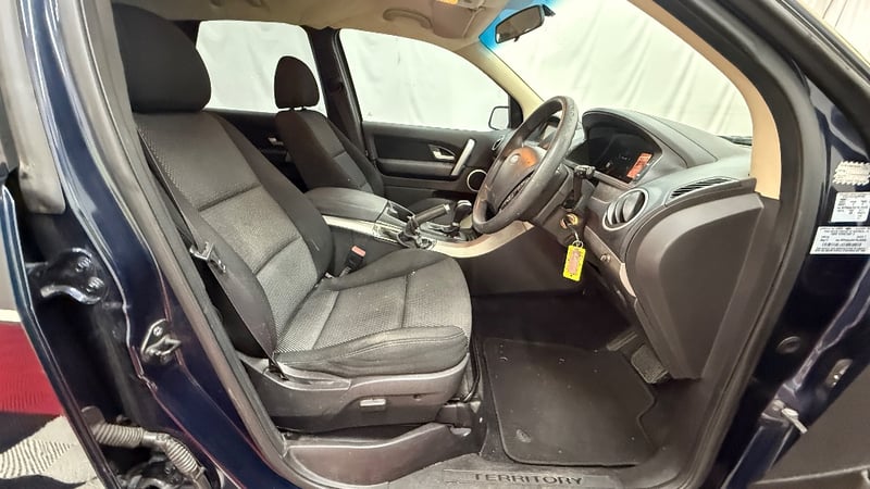 Description/extras: This 2011 Ford Territory SZ TX is a spacious seven-seater SUV finished in striking dark blue with complementary cream interior trim. Powered by a 4.0-litre naturally aspirated V6 petrol engine paired with a six-speed automatic transmission and front-wheel drive configuration. The vehicle presents with 137,401 kilometres on the odometer and features ProRack roof bars for additional cargo capacity. The interior showcases a practical layout with fabric upholstery, AM/FM CD audio system, air conditioning, and comprehensive instrumentation. Headlining shows discolouration and minor staining, dashboard trim exhibits minor wear, sunroof mechanism shows signs of age with light oxidation visible internally, minor scuffing visible on interior door panels and trim.. Inspection recommended.