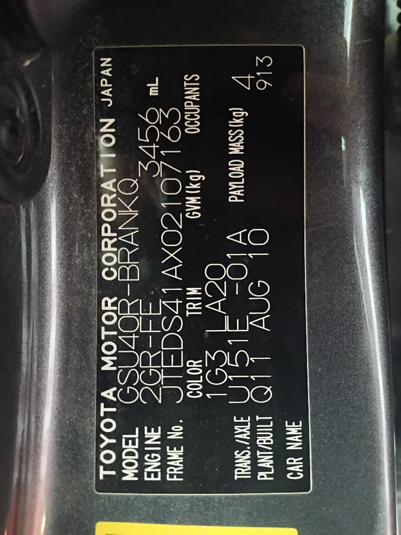 ENG No: 2GRJ323820 (AS PER PPSR)