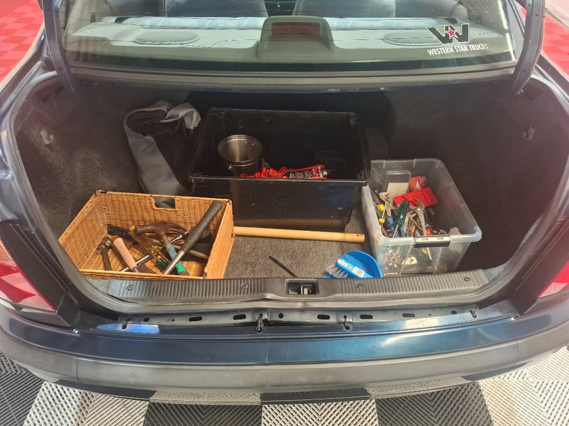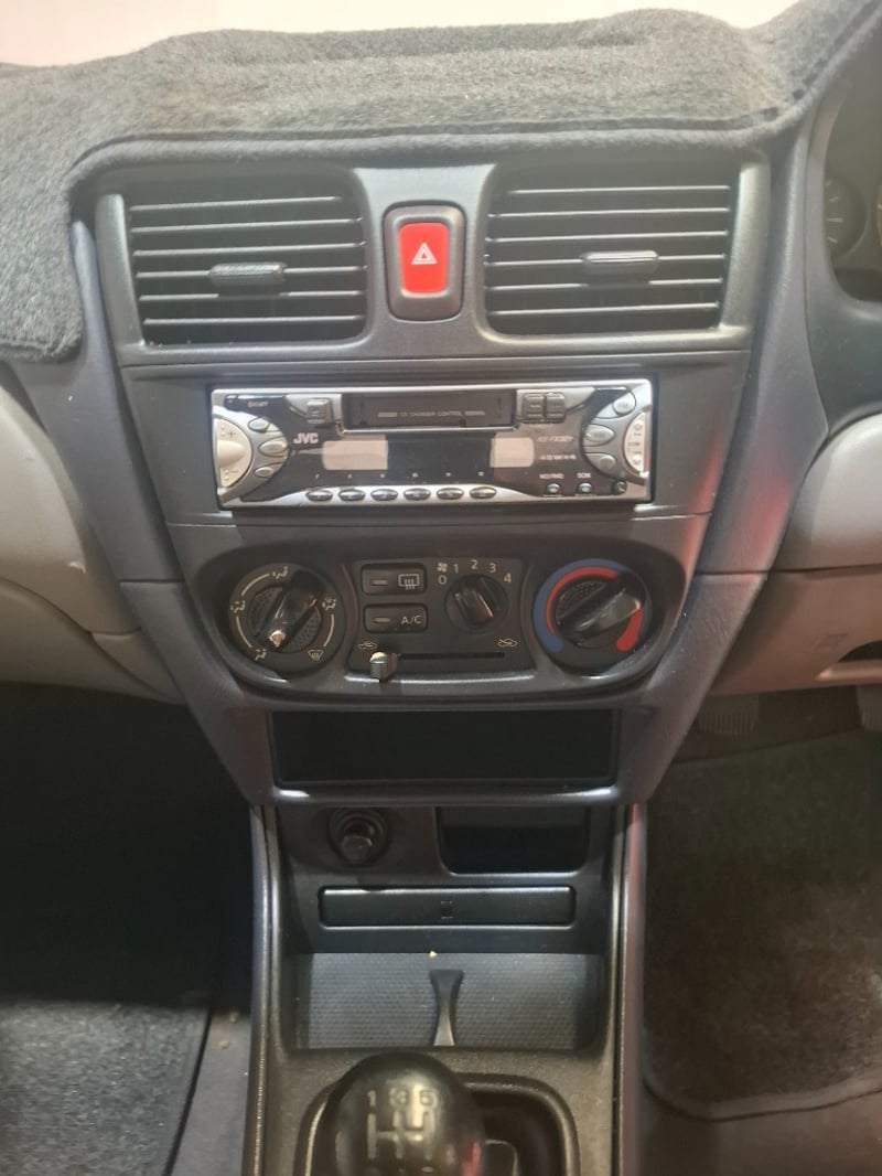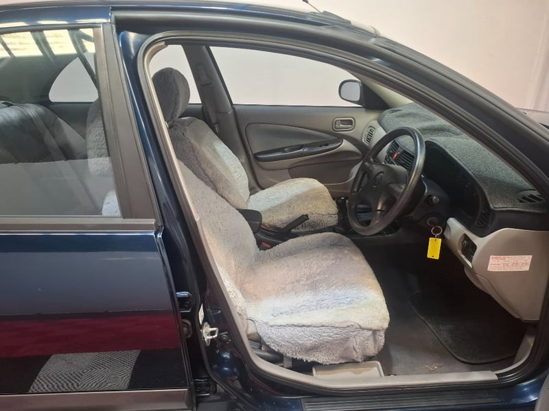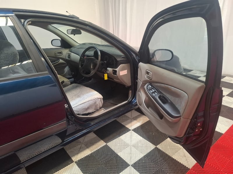 With JVC sterio system, floor mats. Dash mat, front wool style seat covers, front cup holders, boot release on dash. Electric windows and side mirrors. Interios has minimal stains and marks. Clear coat has come off the rear spoiler and has miss matched paint, rear bumper has cable ties holding it to frame, boot has dents, paint has scratches and marks on all,panels, there is tape on the,passenger side mirror cap. Exterior plastics,have fade present.