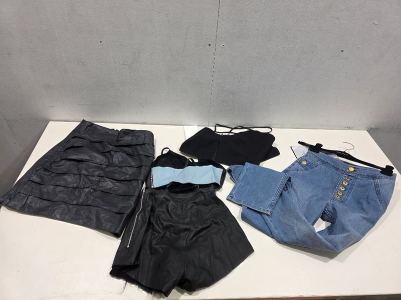 Assorted lot of clothing, including jeans, shorts, shirts, tops, dresses and more NOTE: Some still have tags others are worn All item have slight marks, makeup stains and small defects