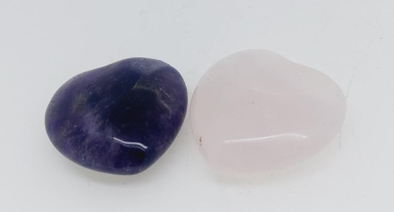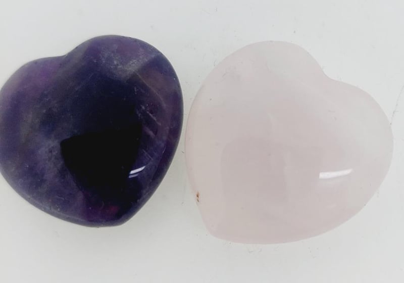 AMESTHYST AND ROSE QUARTZ CRYSTAL HEARTS.