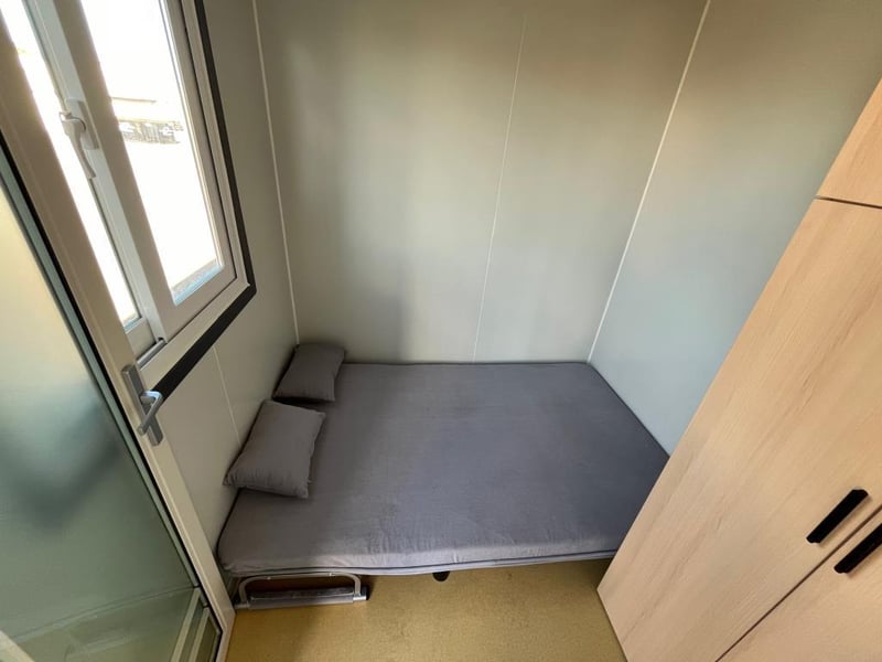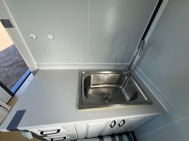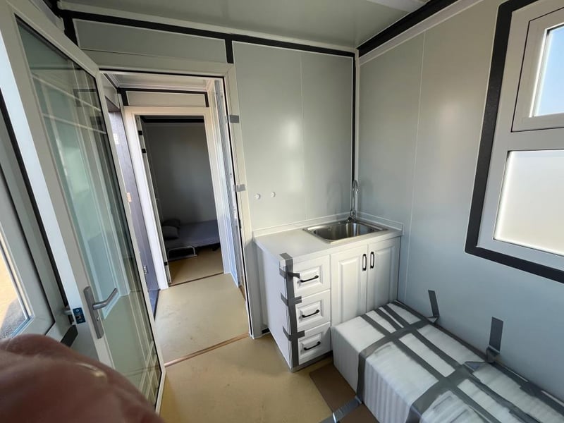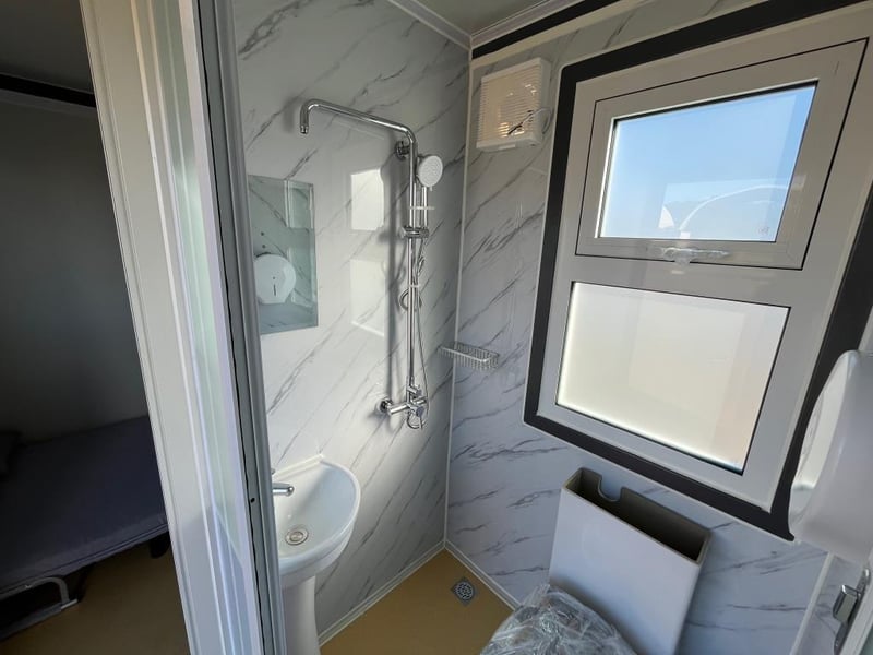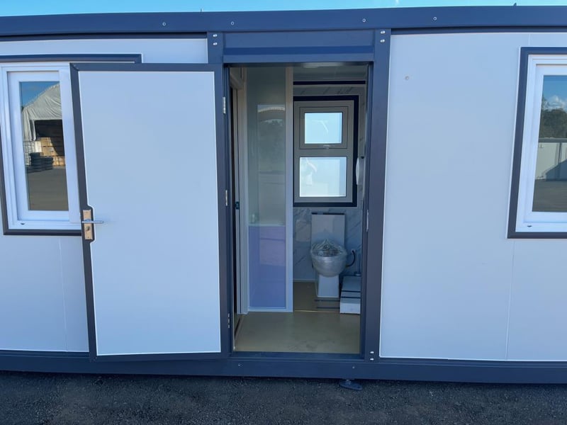 6m 2 Room Accommodation Block, Room 1 Fitted with:,Bed, also folds into couch,Wardrobe, Room 2 Fitted With:, Sink, Taps, Cupboards, Bathroom Fitted with:,Shower, Toilet, Sink, Mirror,Hot & Cold water Inlets, Waste Outlet, 2 Grey Water outlet, Exhaust Fan Vent, 4 x Windows,Toilet, WELS Registration Number: L07047, Efficiency Star Rating 4,Water Consumption Full Flush 4.5 L / Half Flush 3.1 L, Nominal Average Flush: 3.4L, Bathroom Tap Equipment, WELS Registration Number: T38665, Water Efficiency Star rating: 5, Water Consumption 6L/min, Shower:, WELS Registration Number: S17370,Water Consumption Highest – 9L/min,Water Efficiency Star rating at Highest nominal Flow: 3, Water Consumption Lowest – 6L/min,Water Efficiency Star rating at Lowest nominal Flow: 5, Kitchen Style Tap Equipment:, WELS Registration Number: T38672, Water Efficiency Star rating: 5, Water Consumption 6L/min, Approximate Shipping Dimension: 5.96m long x 2.2m wide x 2.42m High, Approximate Weight: 2070kg.,** Note: Photos to be used as a guide only - Unit does not come wired – customer must engage a licensed electrician to supply & install all wiring & components to Australian Standards - this includes switches, Lights & sockets