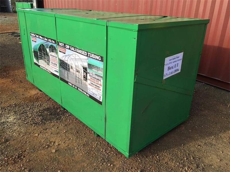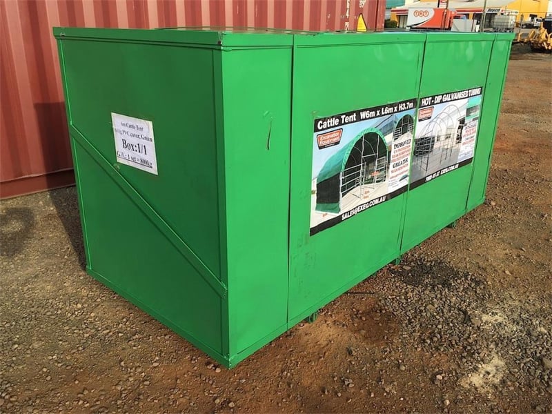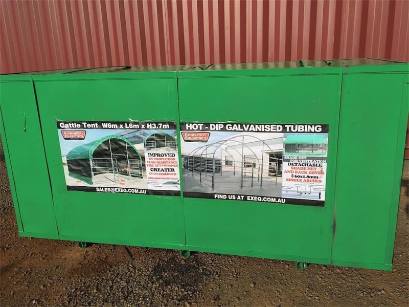 Unused 6m x 6m Multi Purpose Enclosed Shelter/Building, Heavy duty 650g per square metre PVC fabric, galvanized steel tubing, height at peak 3.7m, side panels with shade netting for extra ventilation, 2m x 2.1m entrance gate, Various uses - Carport, Caravan Storage, Garden Storage, Animal Enclosure etc, Approximate Shipping Dimensions: 2600mm L x 1110mm W x 1220mm H, Approximate Weight 800kgLocation: Toowoomba, QLDRef: 170846