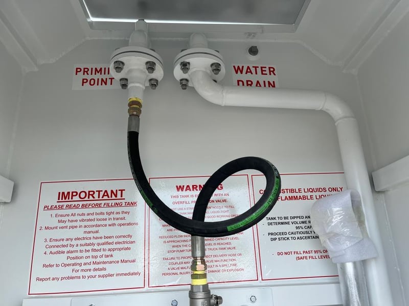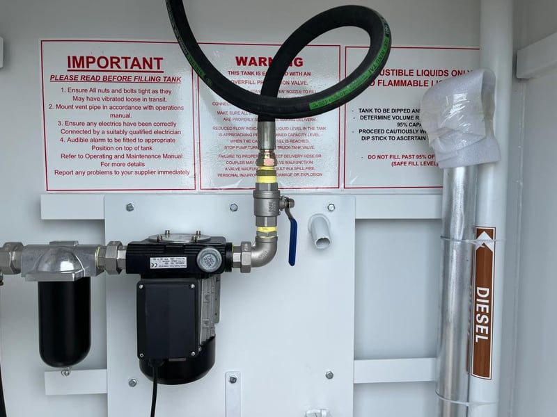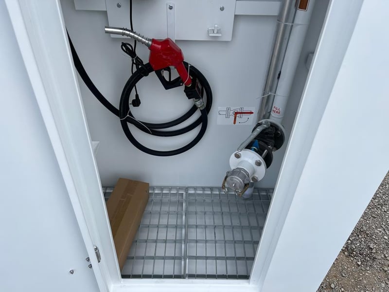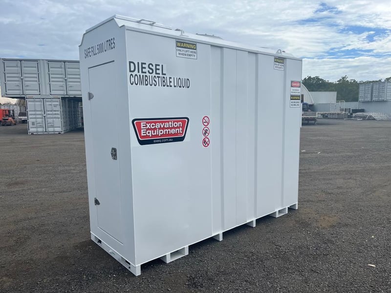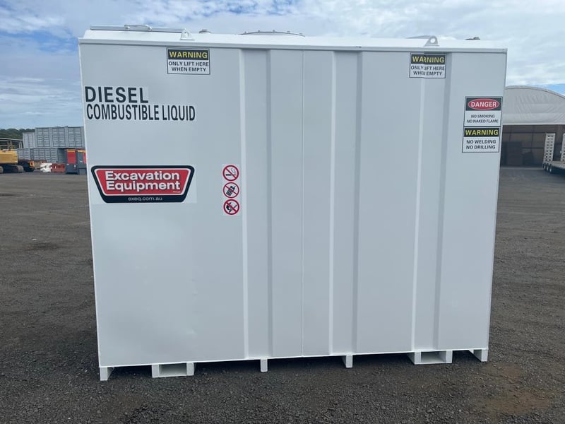 Unused 5000L Slimline Self Bunded Fuel Tank,Model: FS5 comes with Pump. Safe Fill: 5000Litres, Fork Pockets, Tank is constructed to AS1692-2006 & AS1940-2017, Shipping Dimensions: 2950mm L x 1140mm W x 2520mm H. Empty Weight: 1850ks. Serial No FS525093006