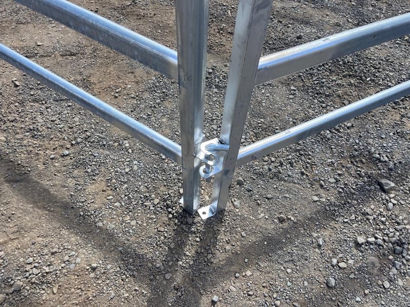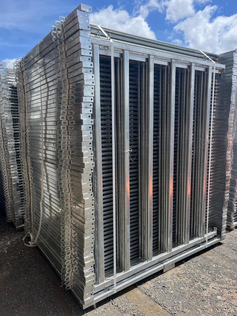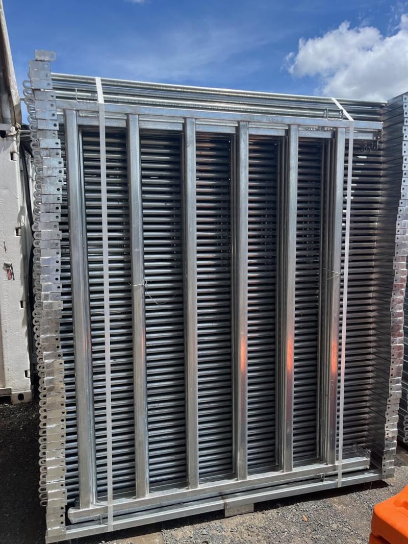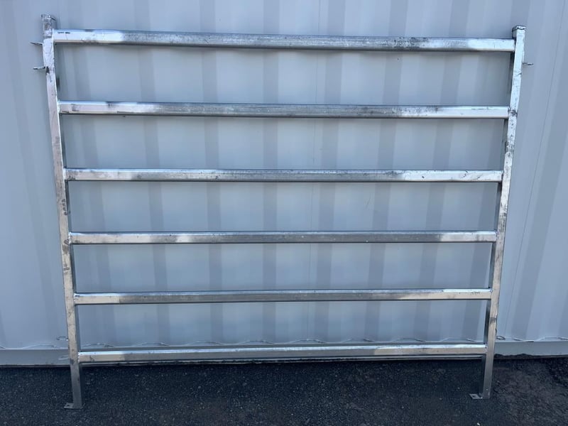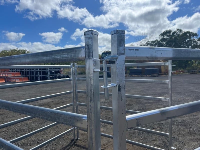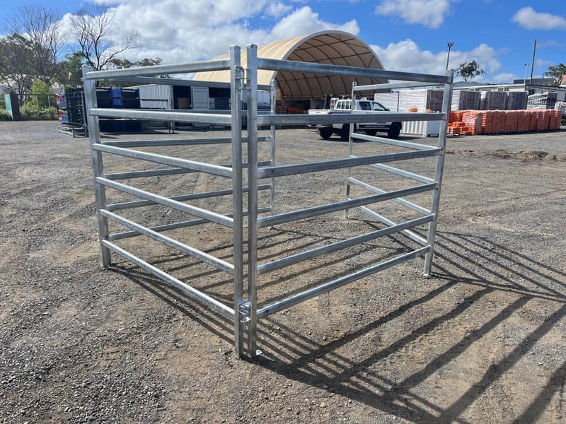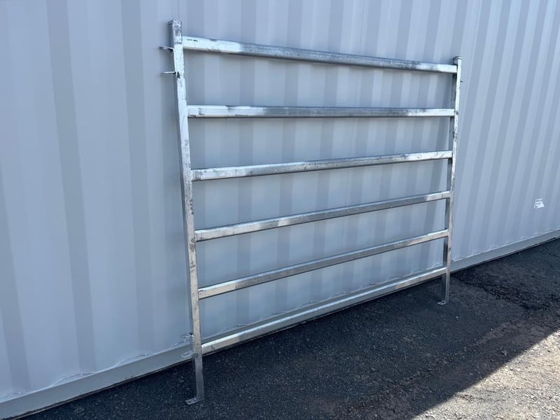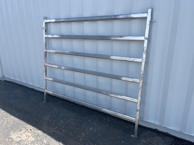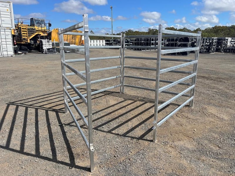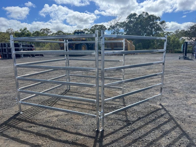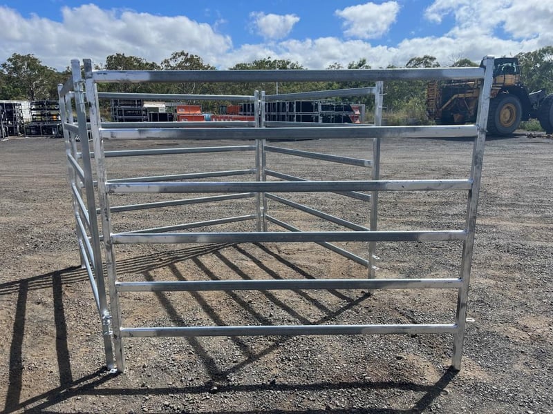 Quantity of 8 Unused Cattle Fence Panels, Galvanized 6 Rail Panels, 1800mm High - 2080mm Wide, 40mm outside Box Steel, 65mmx25mm Pressed Cattle Panel, Linking Pins includedLocation: Toowoomba, QLDRef: S10884AF
