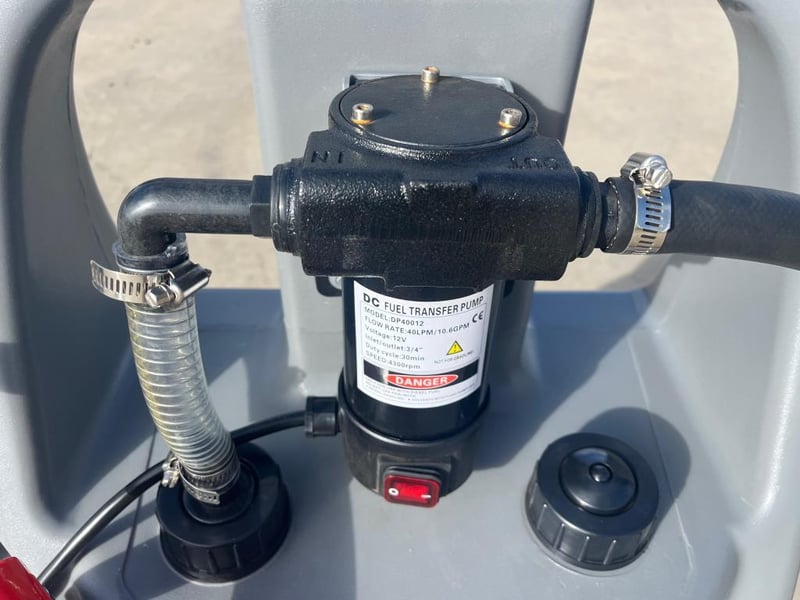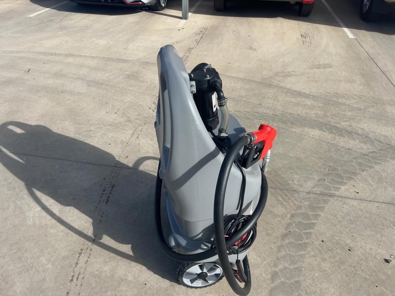 Unused 75L Portable Fuel Tank with 12V DC Pump,, Model: DD7801, Maximum Flow: 40 lpm, 4m of ¾ inch Delivery Hose, Shipping Dimensions: 525mm x 425mm x 1015mm, Weight: 15kg
