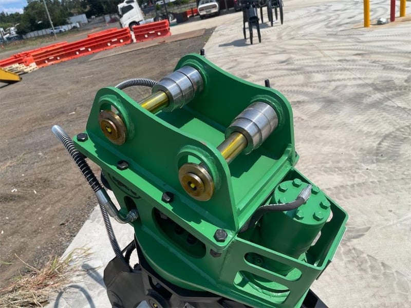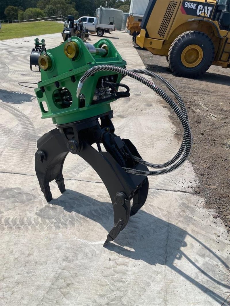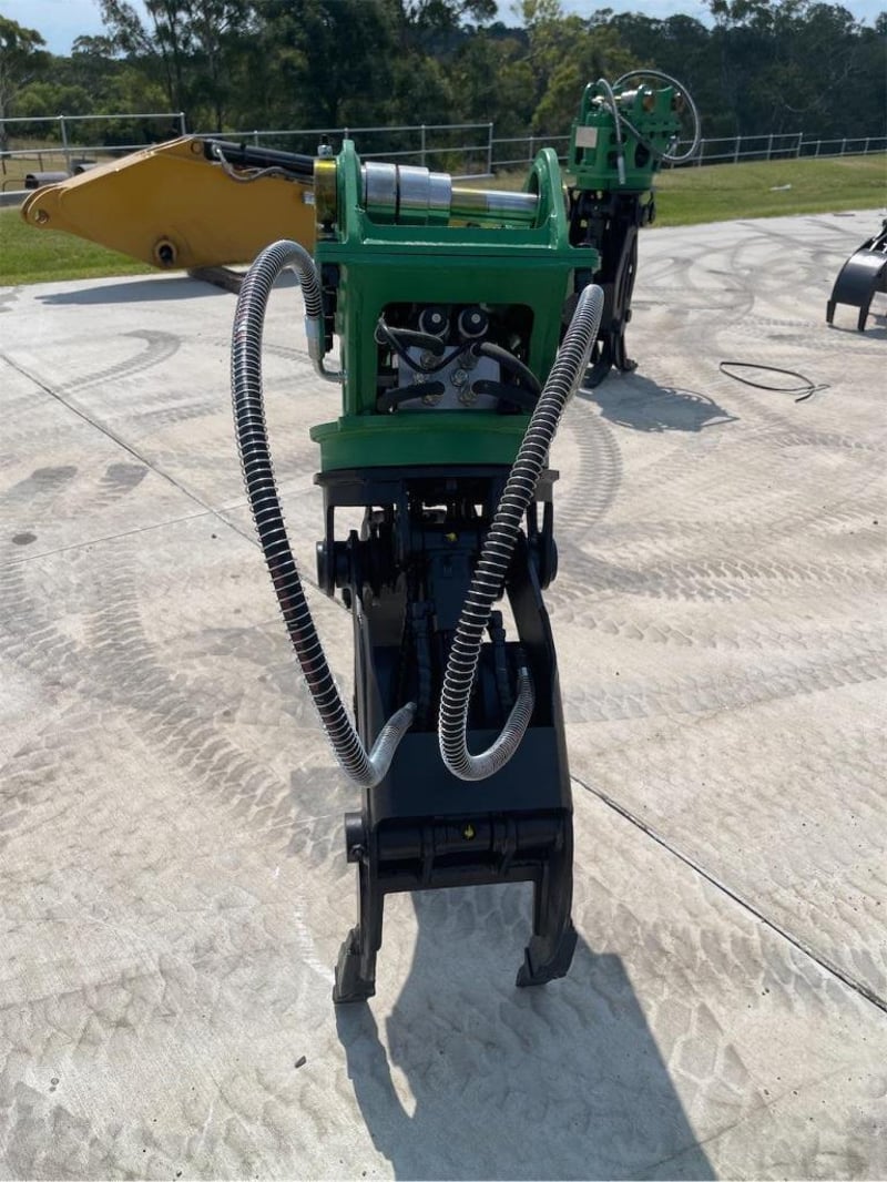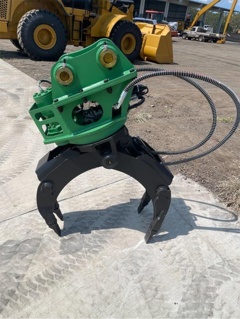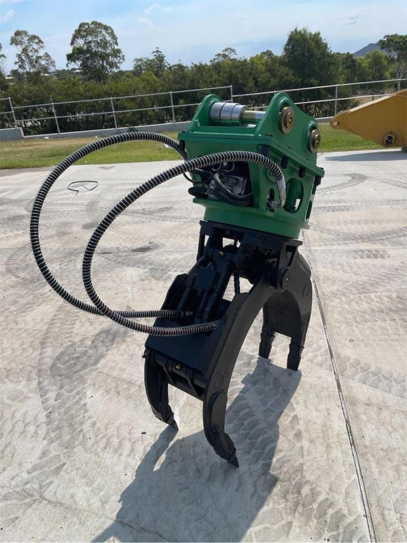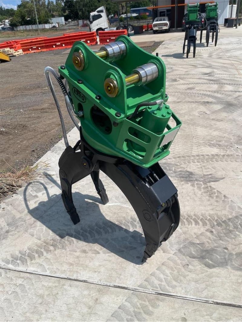Unused Hydraulic Rotating Grapple Attachment, Model: EXEQ02, To Suit 3-5T Excavators, Maximum Opening: 1100mm, Weight: 350Kgs, Required flow: 30-55Lpm, Pressure: 110-140Kg/cm2,Pin Diameter: 42mmm, Total Width Between the ears: 252mm, (Width with Boss fitted 168 mm) Centre to Centre: 230mm, NOTE: Comes with Removeable Boss allowing Pin size changes), Shipping Dimensions: 1450mm L x 630mm H x 740mm W