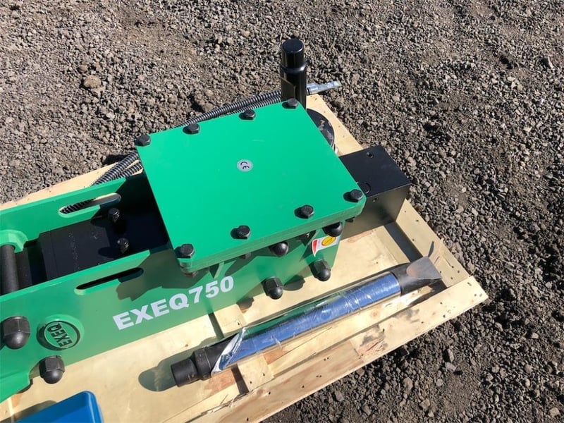 Unused Hydraulic Skid Steer / Excavator Post Driver, Model: EXEQ750P, To Suit both Skid Steers and/or 6-8 Ton Excavators, Side mount for Skid Steers / Top Mount for Excavators, Can be used as both Post Driver & Rock Breaker, Operating Pressure: 120-170 bar, Hydraulic Flow: 50-90 Litres per minute, Frequency - 400-800 bpm, Comes with 1 x Post Driver & 2 x Chisels, Each unit comes with a separate heavy duty mounting plate for skid steers, To be attached by buyer, Approximate plate dimensions 1180mm x 480mm, Weight: 375kg,Location: Toowoomba, QLDRef: 168648