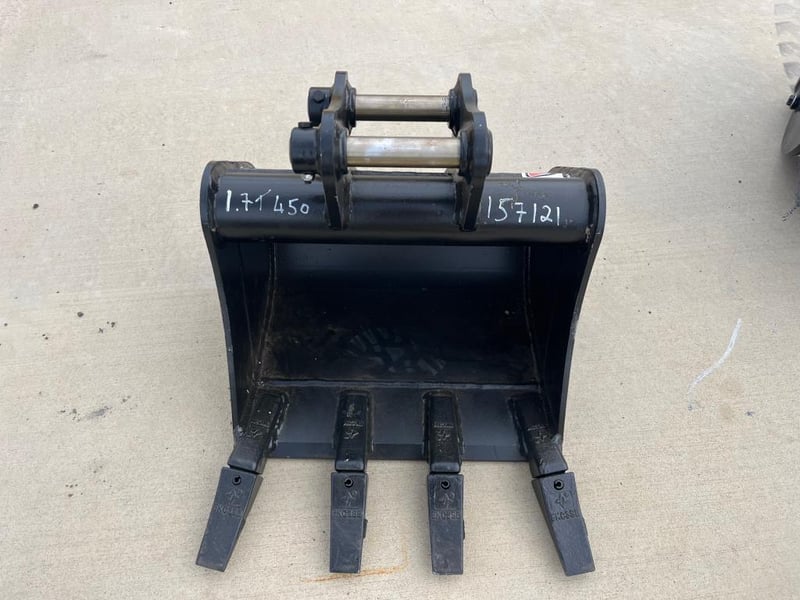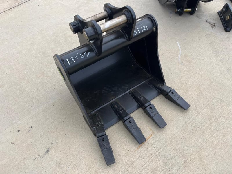 450mm GP/Digging Bucket to suit 1.7T Excavator, GP Bucket to Suit 1-3T Excavator with 4 Teeth, Width: 450mm, Pin Diameter: 30mm, Centre to Centre: 140mm, Between the ears: 107mm, Shipping Dimensions : 490mm L x 530mm W x 480mm H, Weights: 55kgs