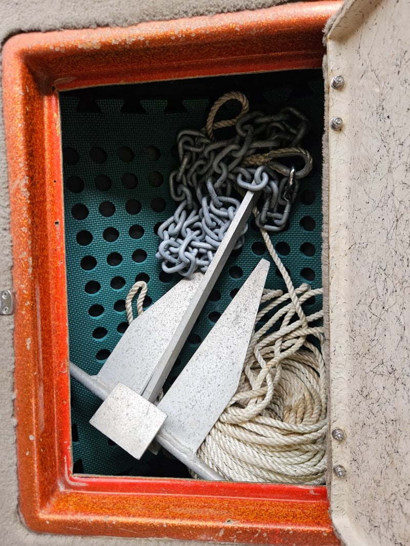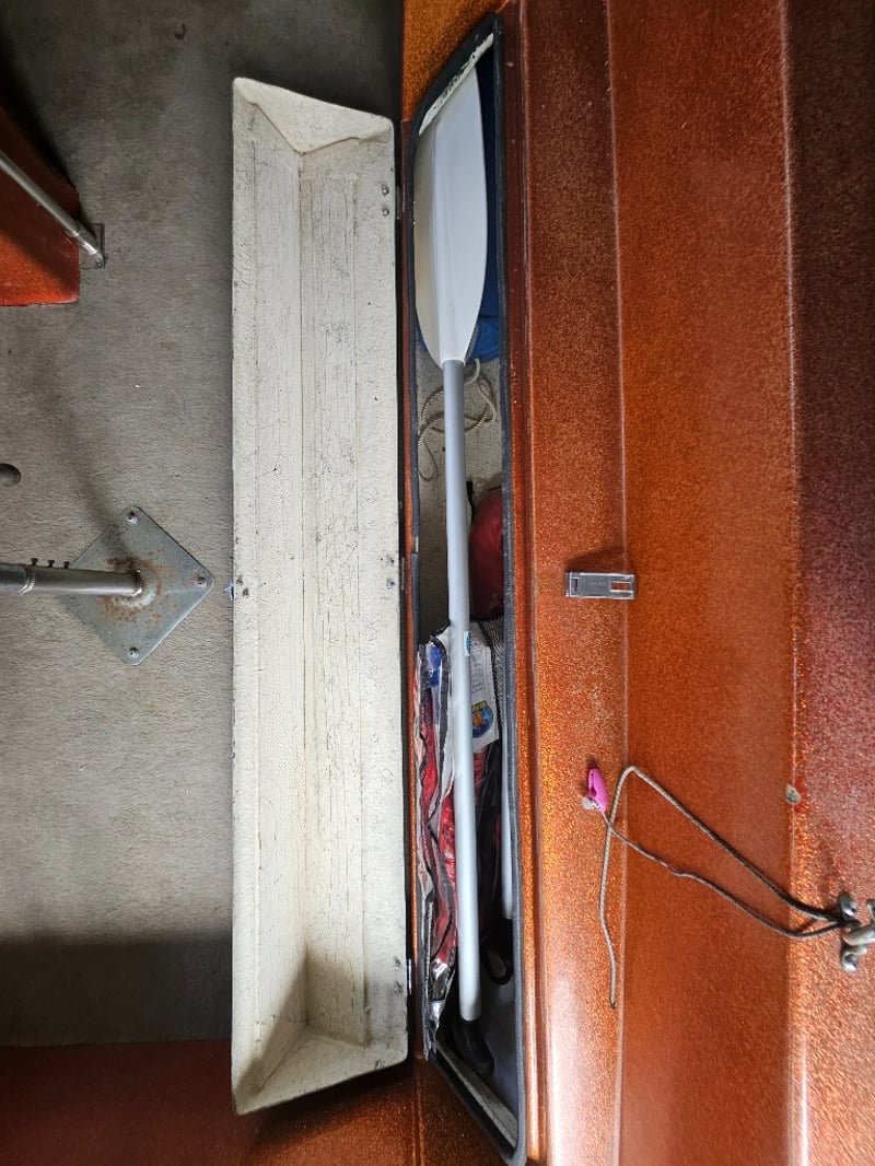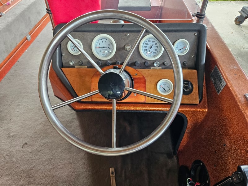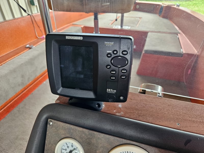 Description: Bimini with cover, refurbished engine, 3 seats, MinKota electric motor (MKAC2), anchor, rope, hummingbird 587d HD, key start, hydraulic steering, oar