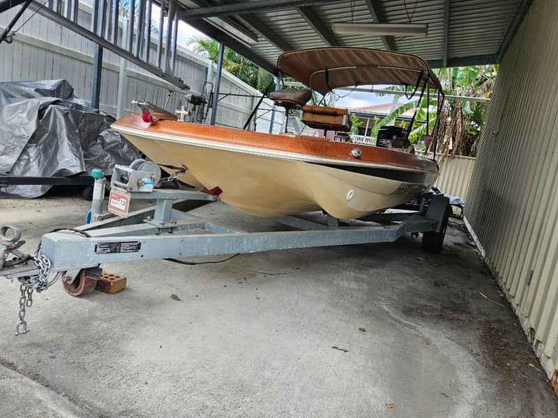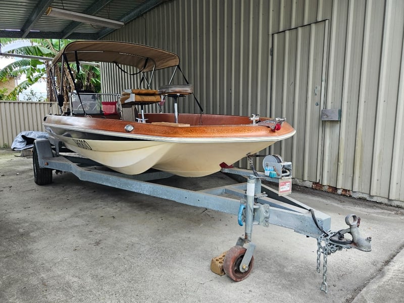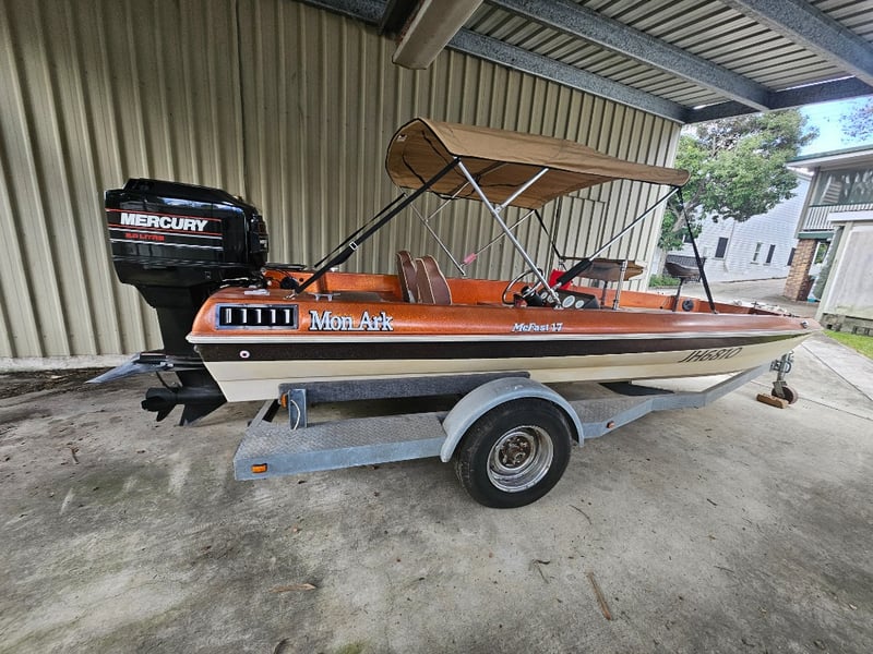 1977 Mon Ark 5.2M Centre Console Boat on a trailer