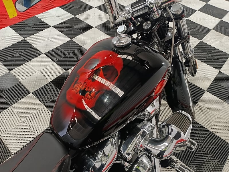 bars, aftermarket air cleaner, custom painted fuel tank,