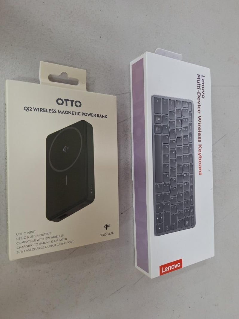 1 x OTTO Qi2wireless magnetic power bank, NEW factory sealed in box, 1 x LENOVO multi-device wireless keyboard, NEW factory sealed in box