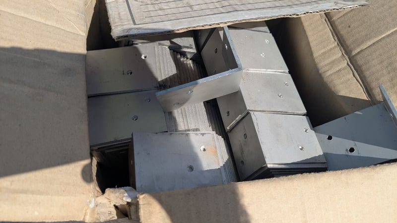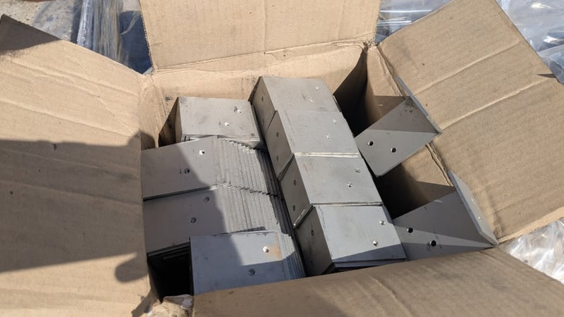 Pallet lot of pre-drilled Aluminium L shaped brackets.Approximately 250 per box 14 boxesInspection Recommended