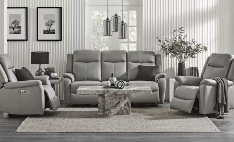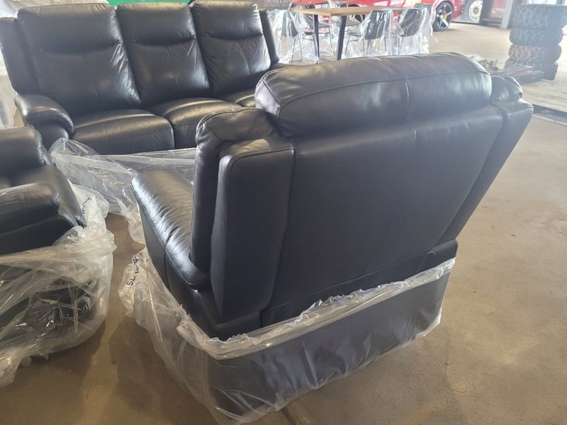 Indra 3-Piece Leather Powered Recliner Lounge Suite Black