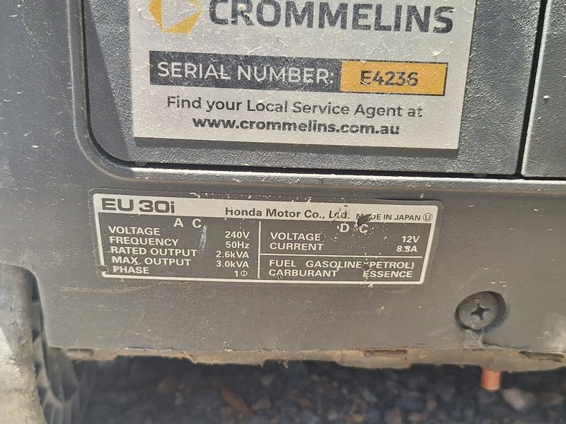 Honda EU30i Inverter, 3kVA, Petrol, Serial No: E4236