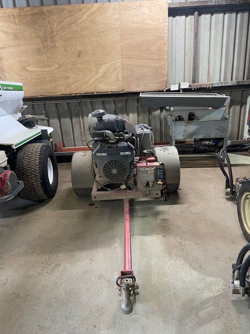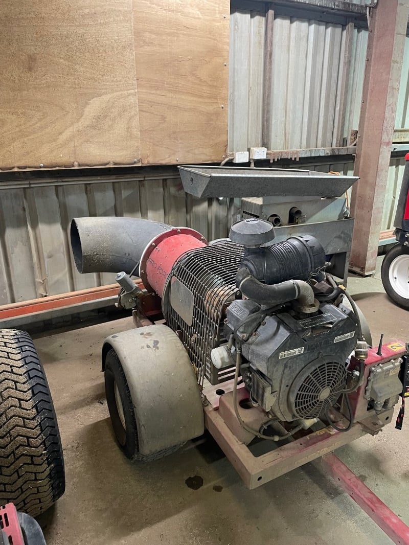 Commercial blower used for clearing grass clippings, leaves, and debris from turf, pathways, and hard surfaces. Commonly used in grounds and property maintenance applications.