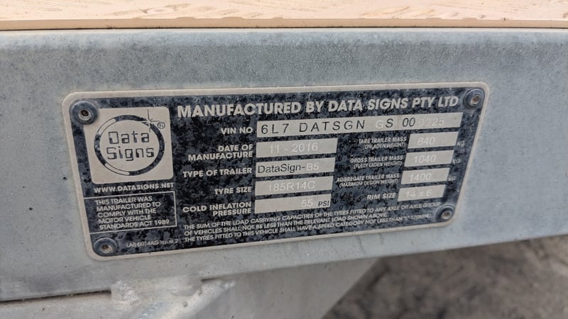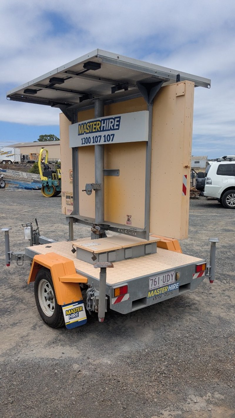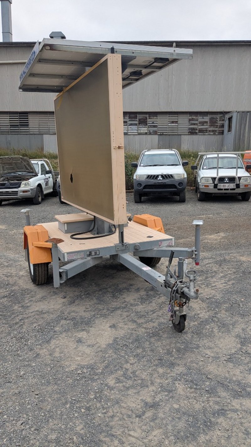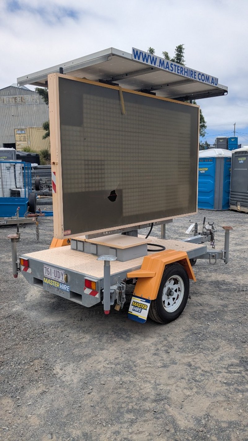 Description/ Extras: Solar Panel, Stabilizing Legs, Full-colour LED matrix for graphics, symbols, and multi-colour text, Single Axle