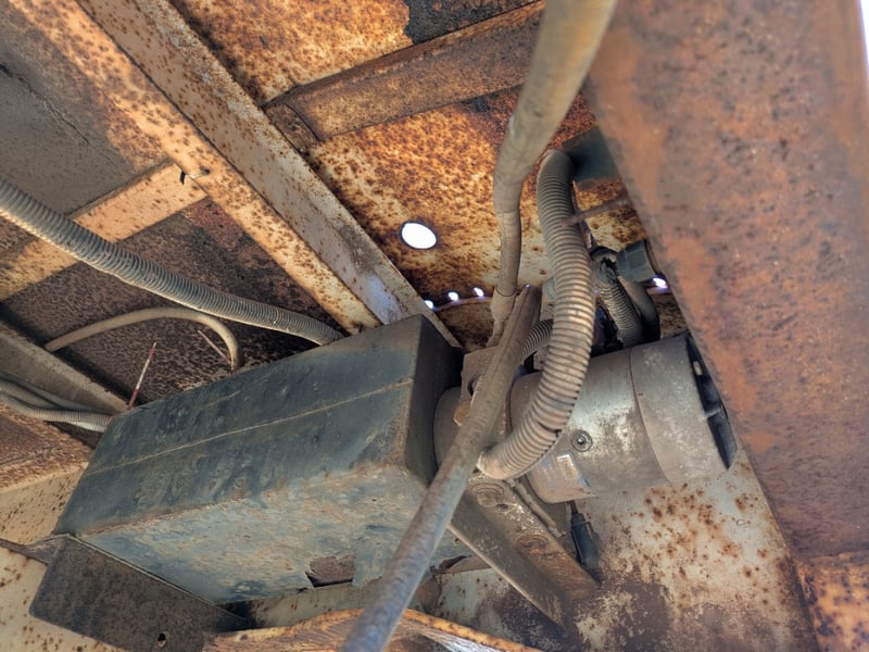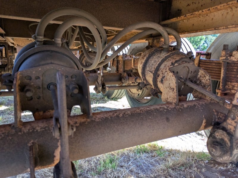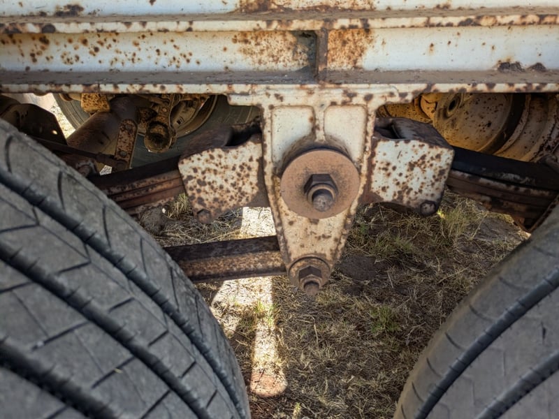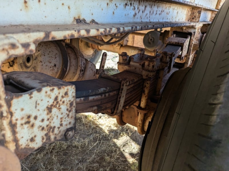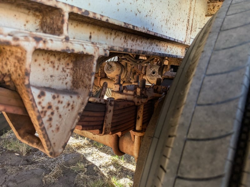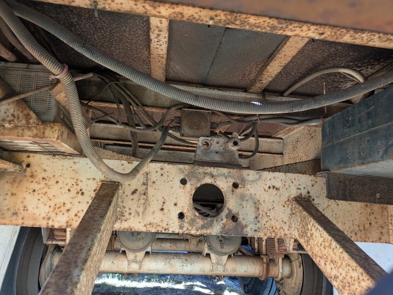 Chassis / Frame Condition: Steel chassis with heavy surface rust and corrosion visible throughout