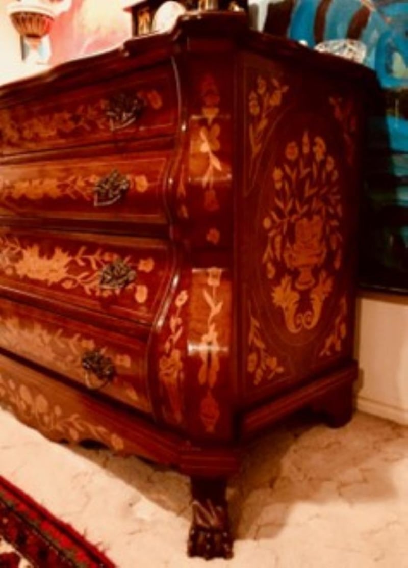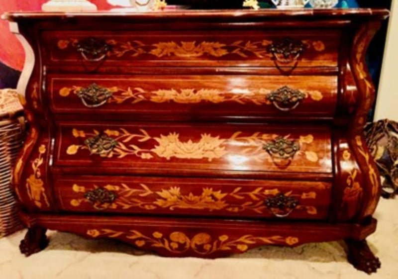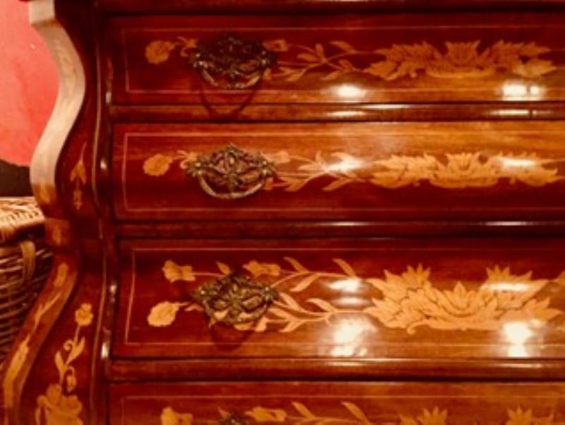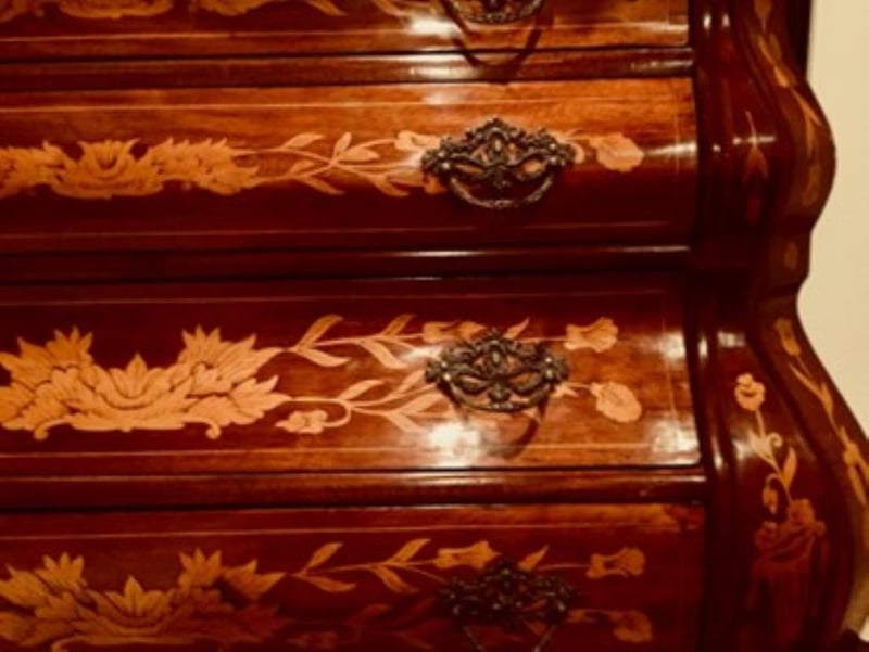 DUTCH 18TH CENTURY BOMBÉ MARQUETRY COMMODE