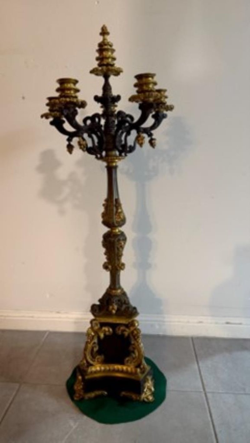 A Large Imposing Pair Of Gilt And Patinated Bronze Candelabra, Late 19Th Century.