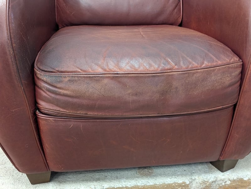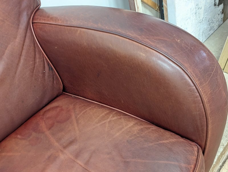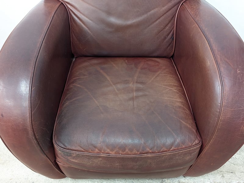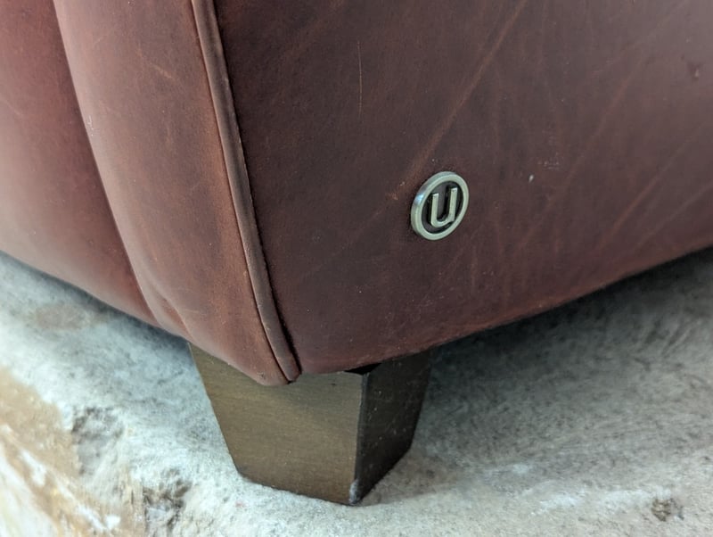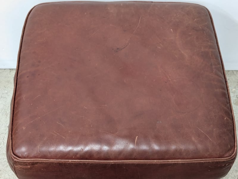 Covered In A Sumtuous Tufted Italian Stressed Leather, in Tobacco Chocolate .