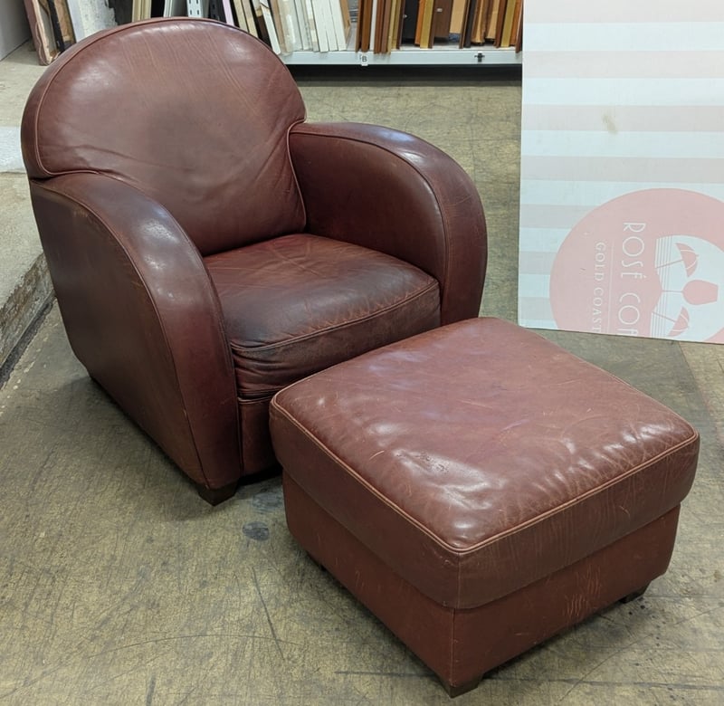 GENUINE NICOLLETI CLUB CHAIR IN THE ART DECO STYLE WITH MATCHING OTTOMAN