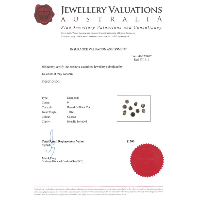 1.04CT TDW X 9, NATURAL COGNAC DIAMONDS