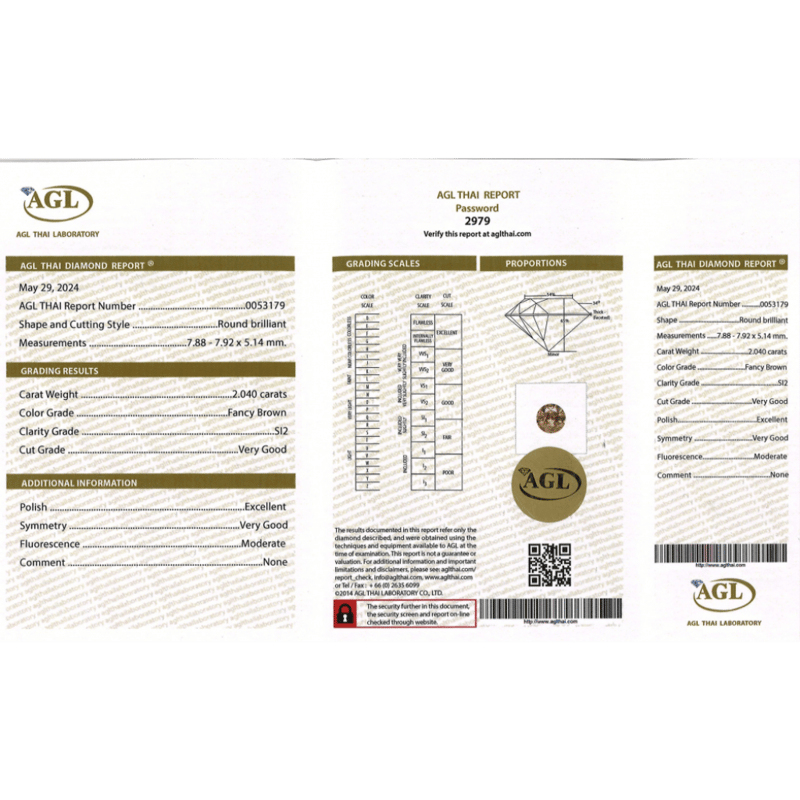 Round Brilliant Cut, Fancy Brown, Si2 Clarity, Loose, Unset. Stone Comes Sealed With Agl Report: 0053179.