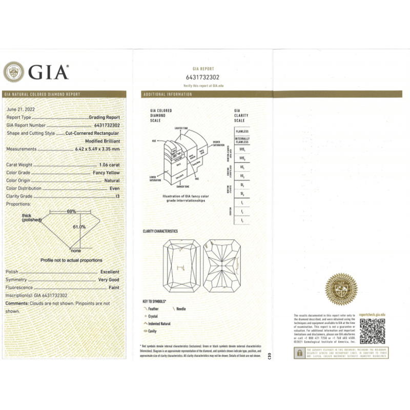 Cut-Cornered Rectangular Modified Brilliant Cut, Fancy Yellow, I3 Clarity, Treated, Loose, Unset. Stone Comes With Gia Report: 6431732302.
