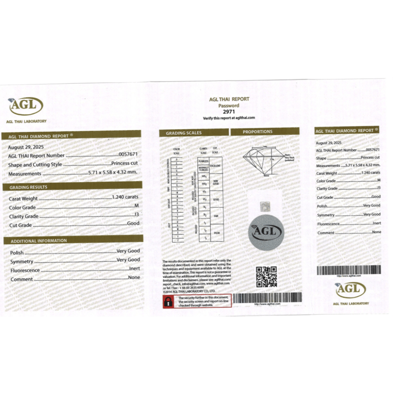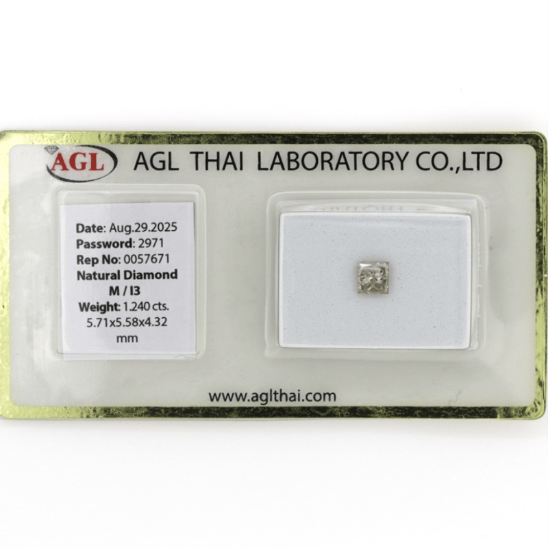 Princess Cut, M Colour, I3 Clarity, Loose, Unset. Stone Comes Sealed With Agl Report: 0057671.