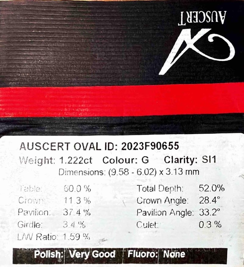 1.22CT OVAL NATURAL DIAMOND.G/Si1Accompanied By Auscert Certificate 2023F90655Condition: Good - Refer To ImagesCROSSDOCKED163037+9