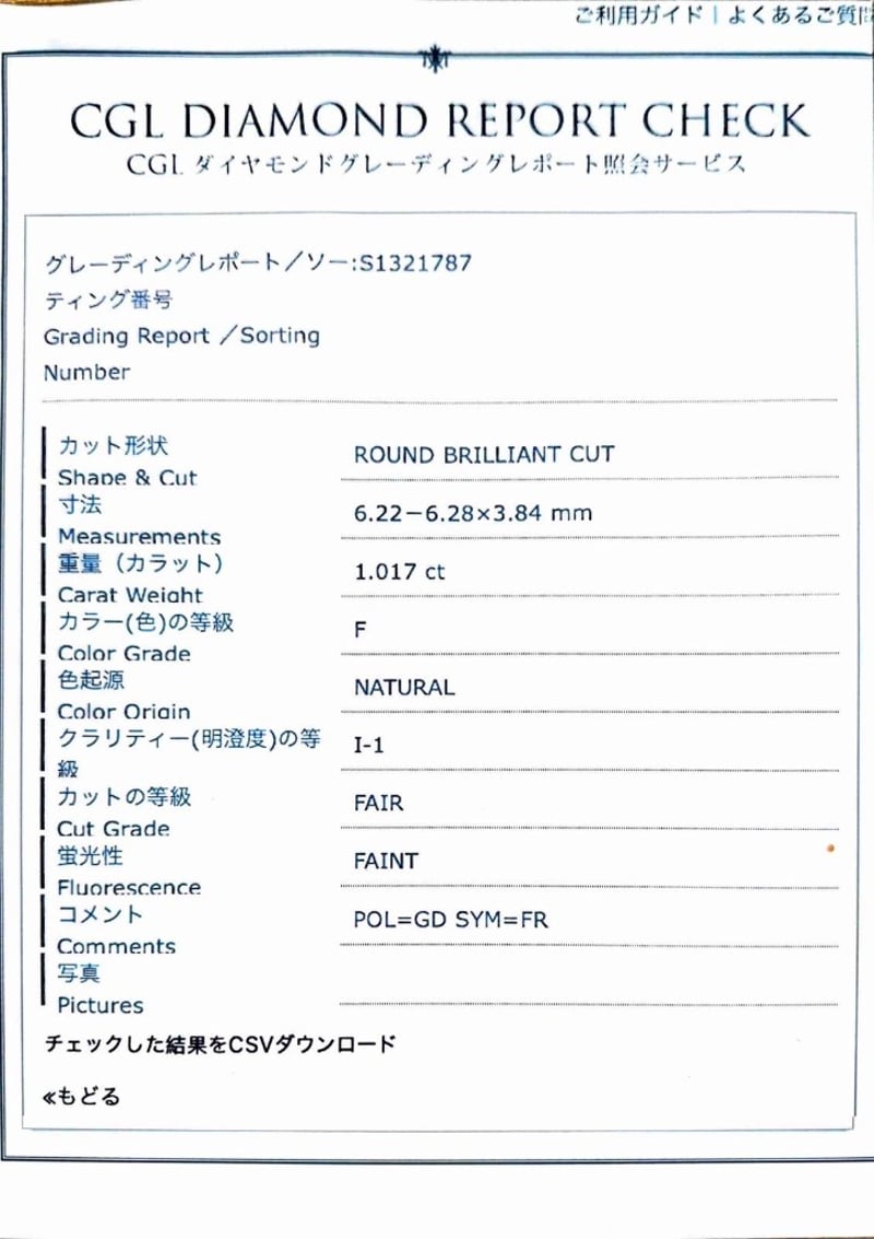 1.017CT ROUND NATURAL DIAMOND.F/11Accompanied By Cgl CertificateDimensions: Height: 6.28mm, Width: 3.84mmCondition: Good - Refer To ImagesCROSSDOCKED163037+13