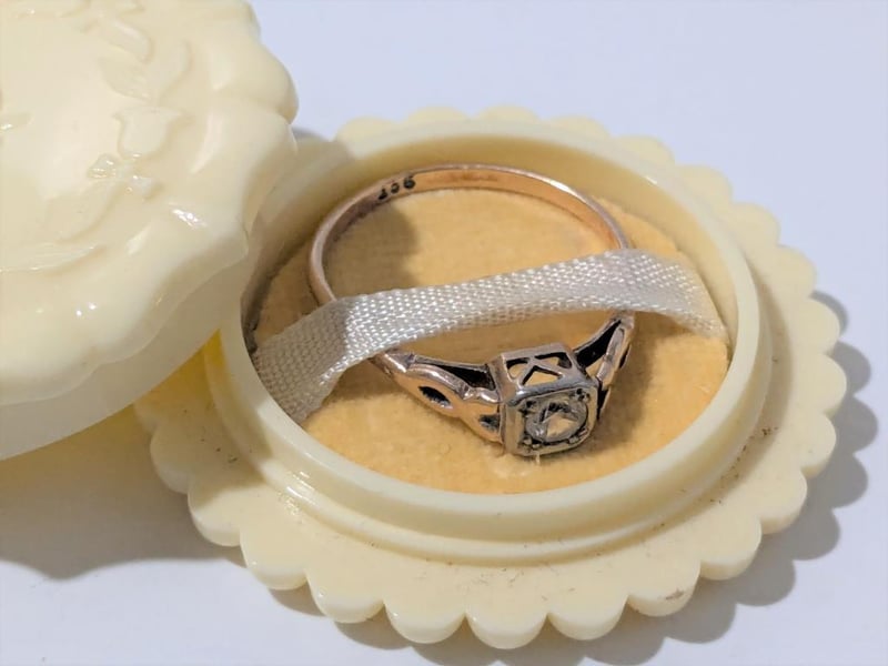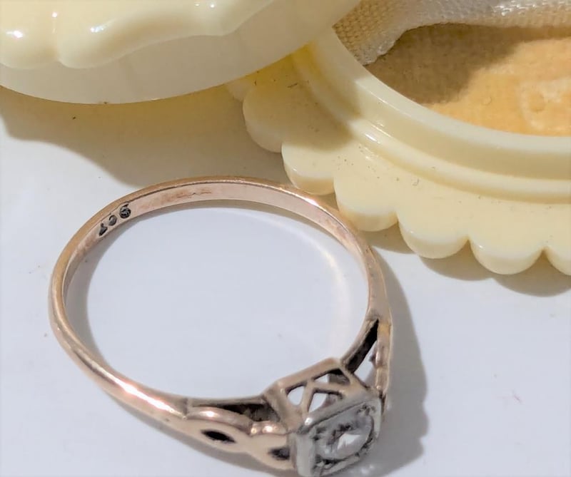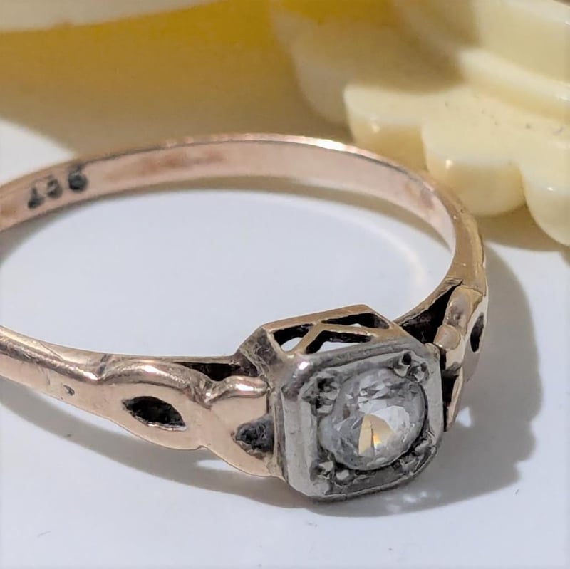 9CT GOLD RING WITH WHITE STONE IN VINTAGE RING CASE