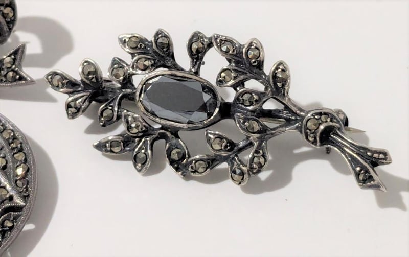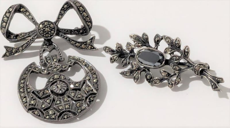 MARCASITE VINTAGE BROOCHES IN YELLOW BOX