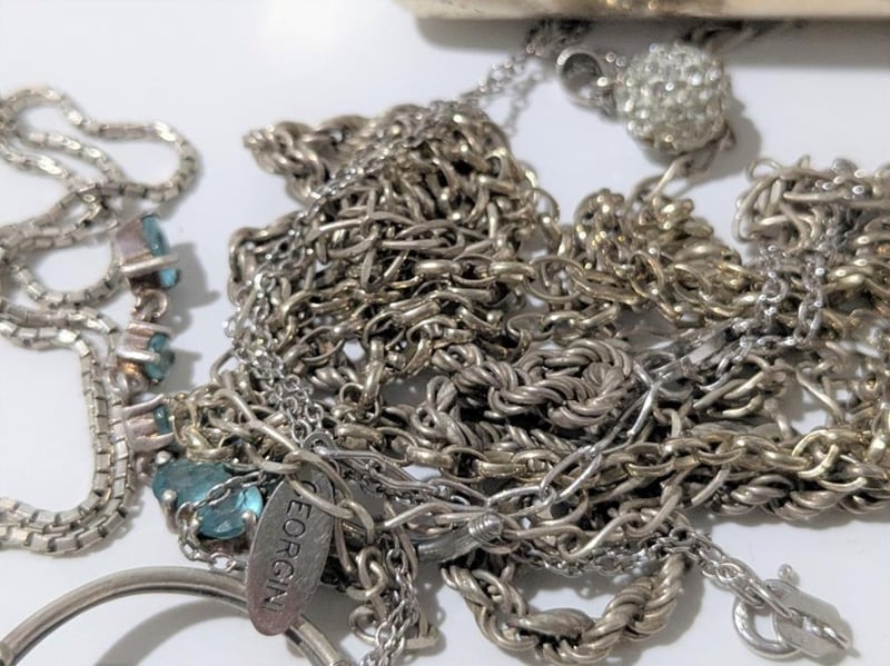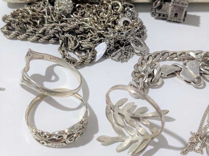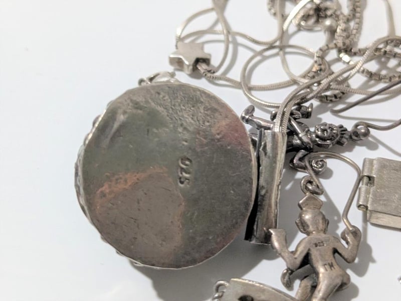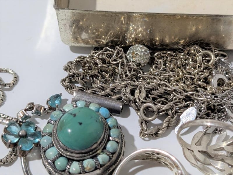 STERLING SILVER JEWELLERY IN METAL CIGARETTE CASE