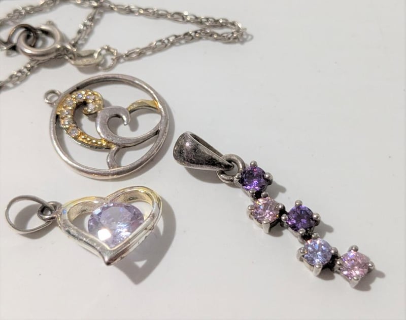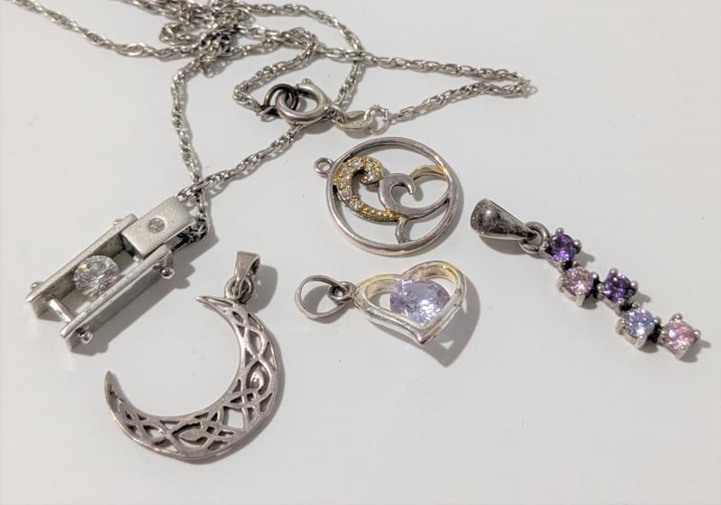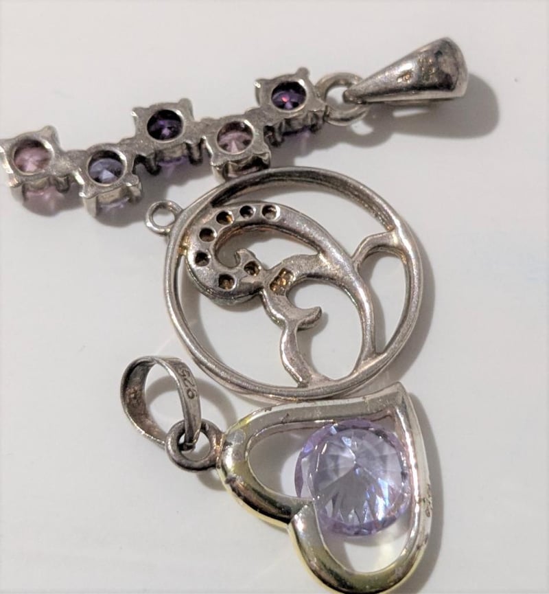 Includes Purple Stones, Moon & Heart, All Marked 925