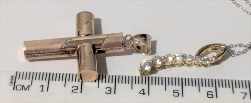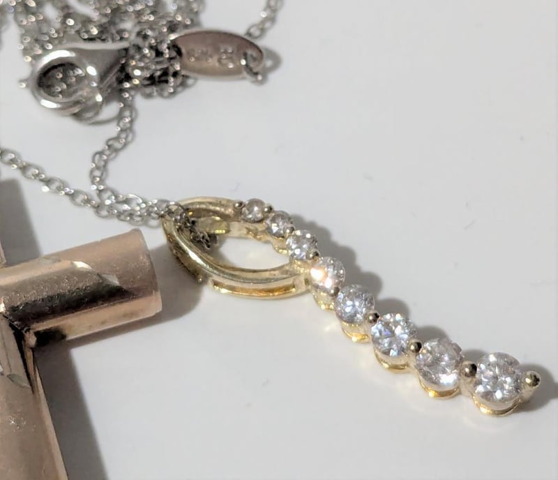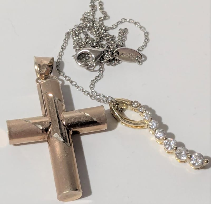STERLING SILVER CROSS & STONE PENDANT WITH CHAIN