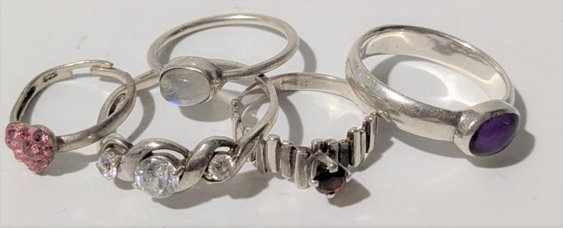 STERLING SILVER RINGS WITH COLOURED STONES, QTY OF 5 All Marked 925 Or Stg Condition: Good - Refer Images 0586356+10
