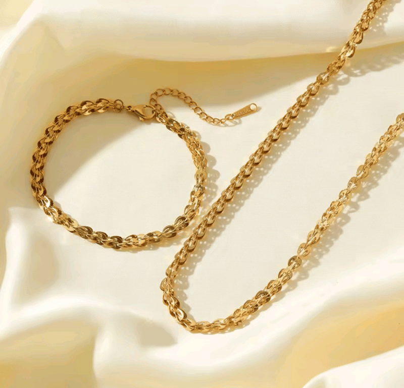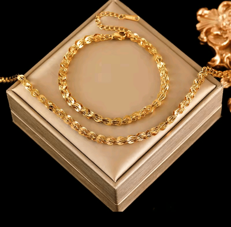 GOLD STAINLESS STEEL NECKLACE BRACELET SET
