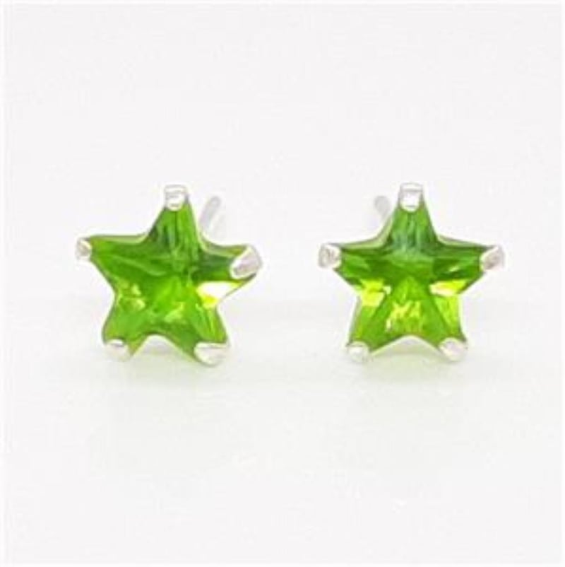 NATURAL PERIDOT STAR EARRINGS Made In Solid Sterling Silver And Plated In14K White Gold. Features Natural Green Peridot. Earrings Measure 5X5Mm Condition: Good - Refer Images 0488455+2