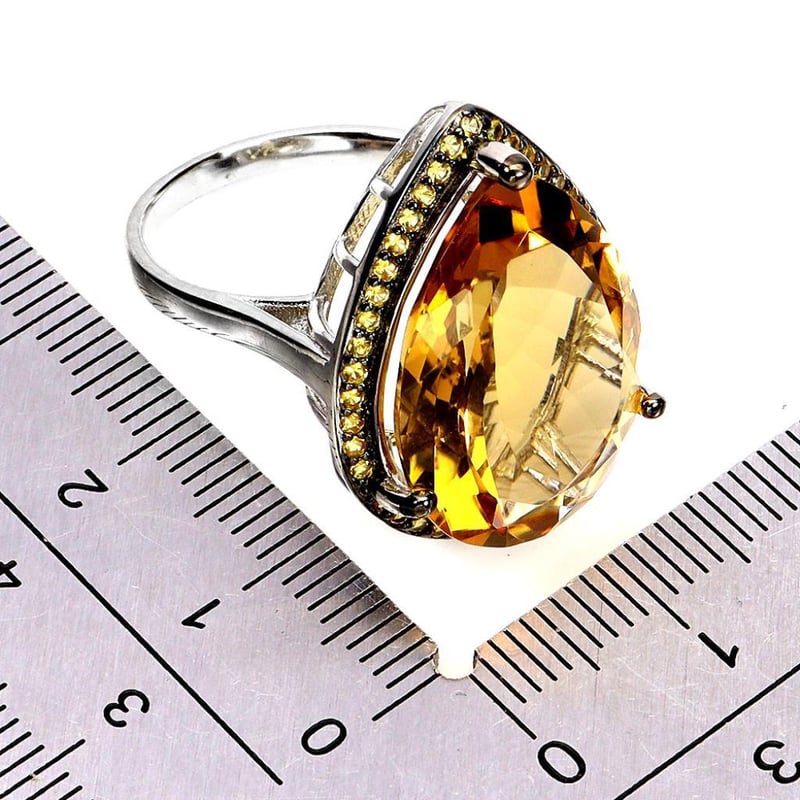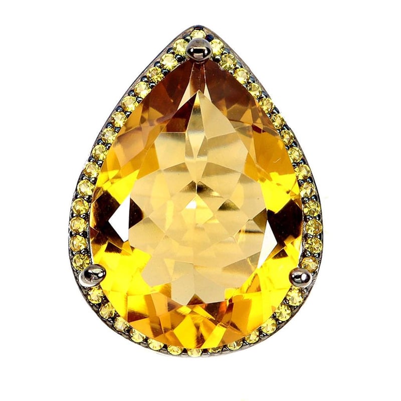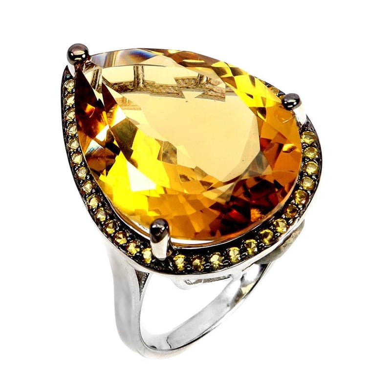 Made In Solid Sterling Silver And Plated In 14K White Gold. Features One Natural Pear Facet Clean Citrine And Sparkling Czs. Face Of Ring Measures 23X18Mm. Ring Size 8