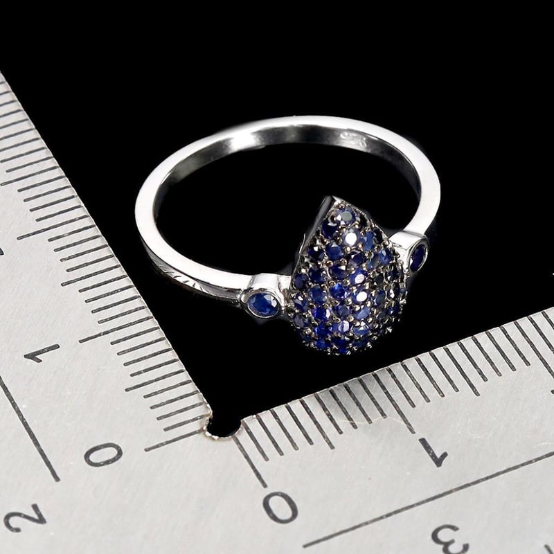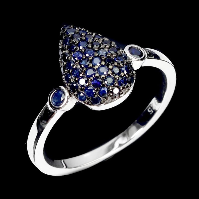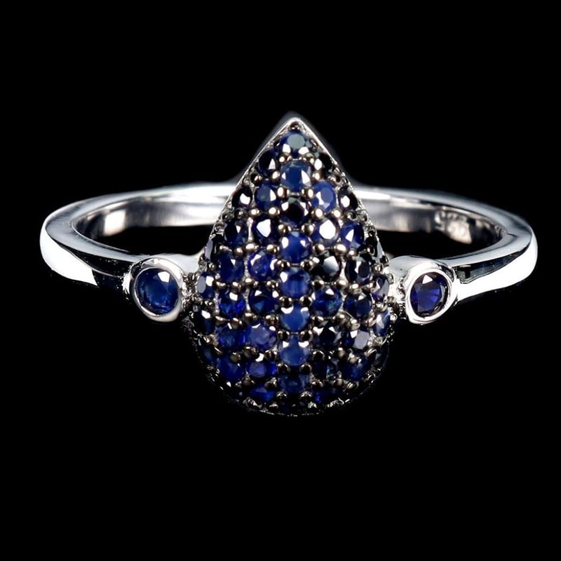 Made In Solid Sterling Silver And Plated In14K White Gold. Features Natural Midnight Blue Diamond Cut Sapphires. Ring Size 7