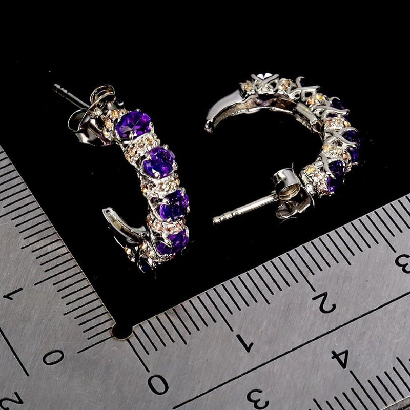 NATURAL AMETHYST & SAPPHIRE EARRINGS.