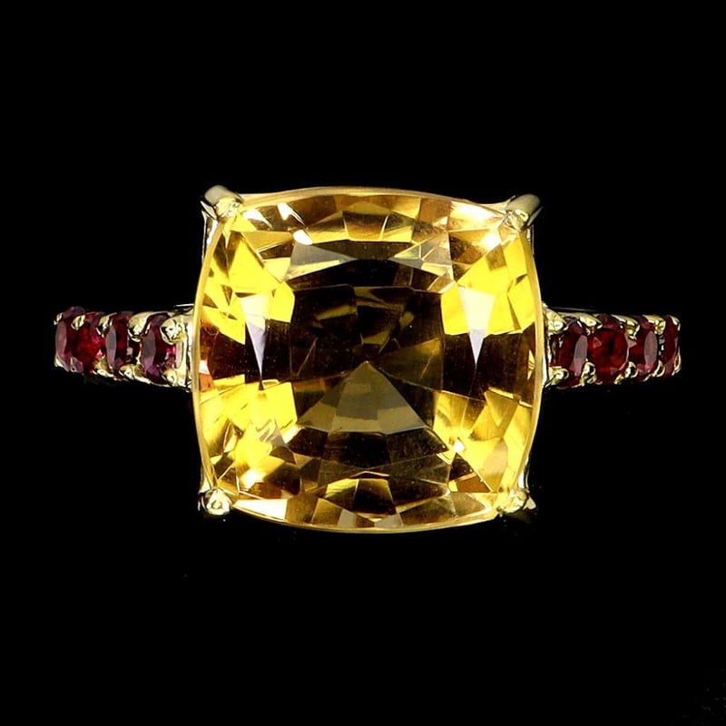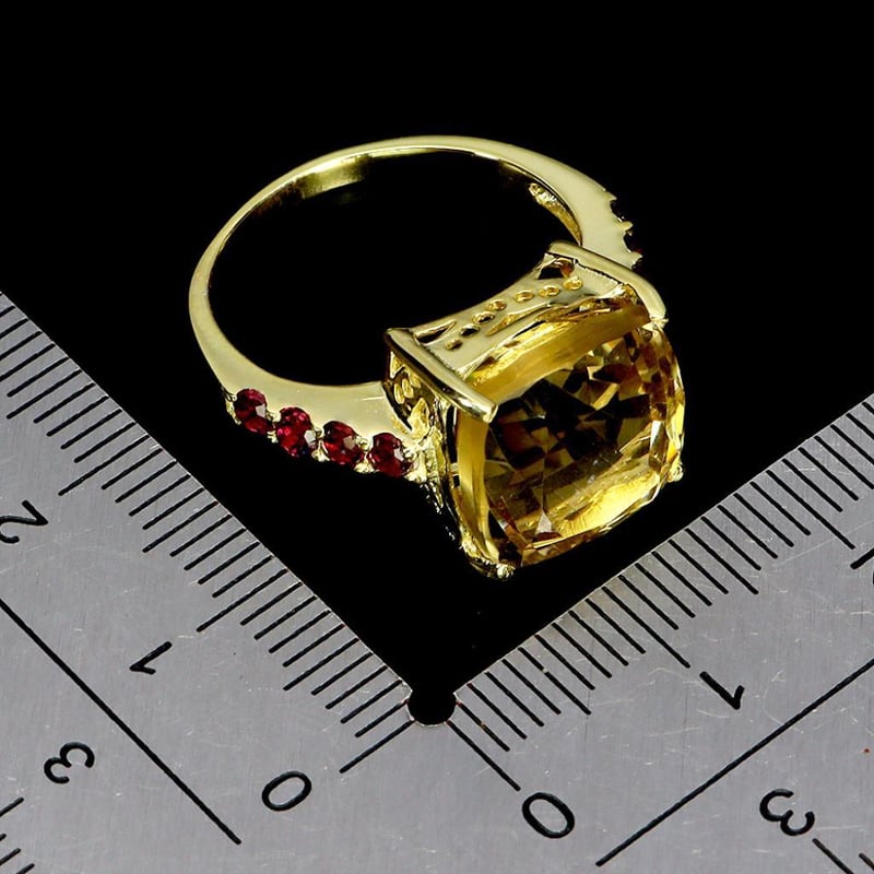 NATURAL CITRINE & GARNET RING. Made In Solids Sterling Silver And Plated In14K Yellow Gold. Ring Size 7 Condition: Good - Refer Images 0488448+6