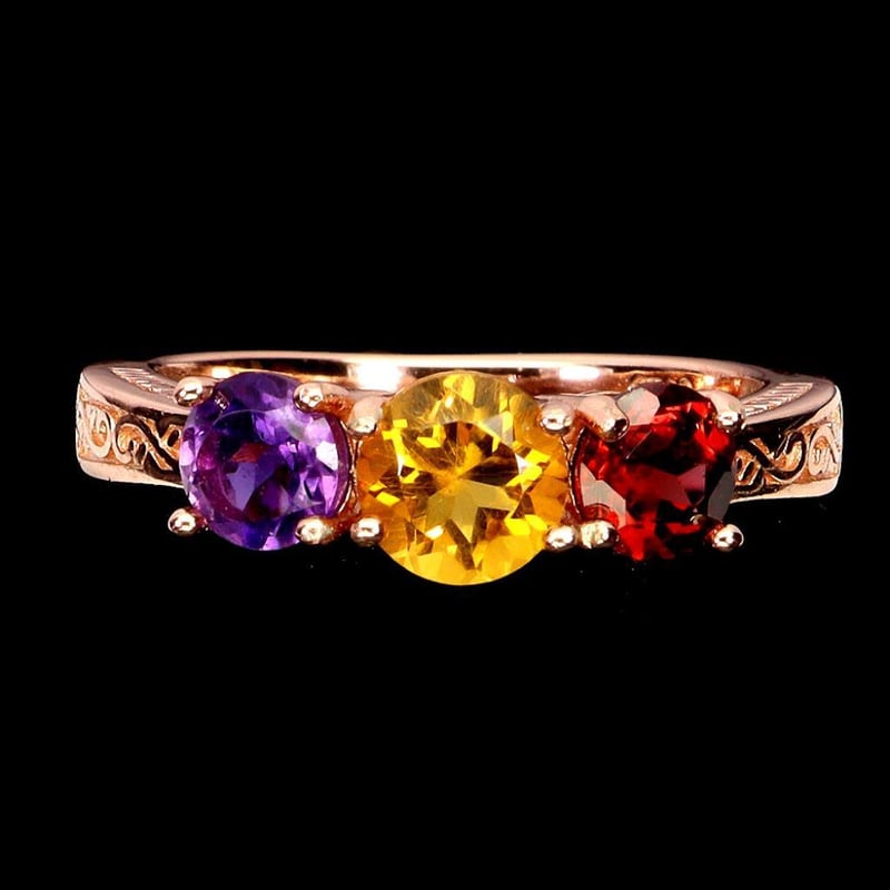 Made In Solid Sterling Silver And Plated In14K Rose Gold. Features All Natural Citrine Amethyst & Garnet. Ring Size 8