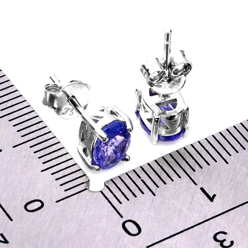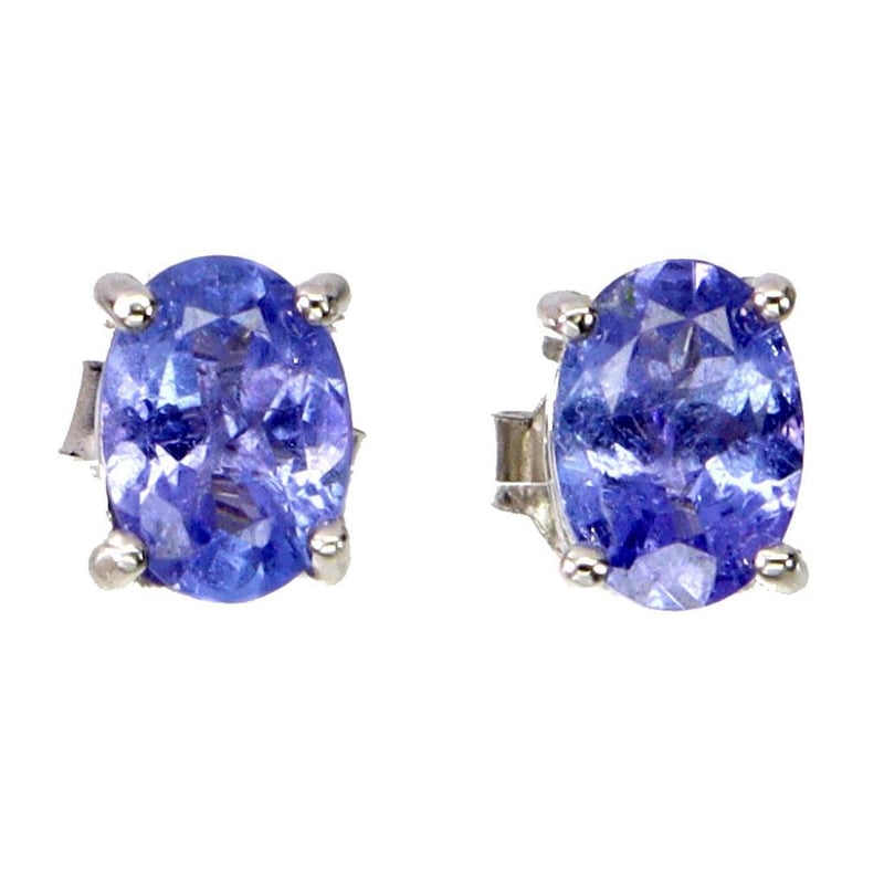 Mad In Solid Sterling Silver An Plated In14K White Gold. Features Natural Oval Facet Violtish Blue Tanzanite'S. Earrings Measure 7X5Mm.